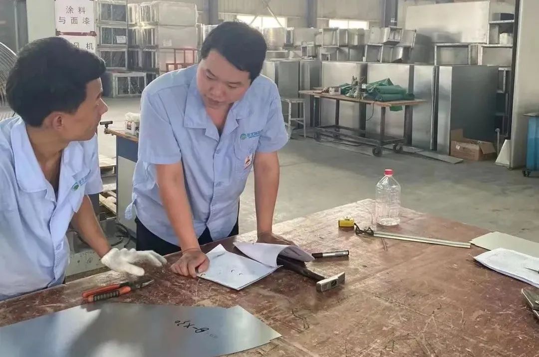 思想與行動的高度融合,成就了一個活脫脫的“華康勇者”。只有不斷地學習才會讓人更加強大。在陶利文入職一個多月的時候,他學習了如何制作消聲器,通過不斷鉆研摸索,在經歷了四次失敗后,終于換取了初步模版的定型,那一周幾乎都是在車間跟隨工人一起解決、完善圖紙和實際制作的問題,這也讓他覺得每天都很充實,很有動力。